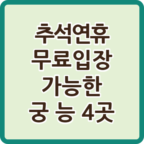추석연휴에 가 볼만한 무료 관람 궁 능을 추천드립니다. 추석이 다가오면서 가족과 친구들을 만나기 좋은 시간이 왔습니다. 이번 연휴에는 특별히 4대 궁과 종묘, 조선왕릉이 무료로 개방됩니다. 아래 추석 연휴에 방문할 수 있는 무료 궁과 능 4곳을 확인하시어 소중한 사람과 함께 한국의 아름다운 문화유산을 탐방하며 뜻깊은 시간을 보내보세요.